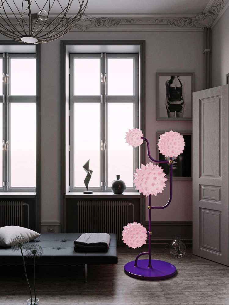 Сферические абажуры нового светильника Dif напоминают кровяные клетки, а сама конструкция — кровеносную систему. Такие ассоциации не удивительны, ведь его автор — Тарас Желтышев — по образованию медик, поэтому в его объектах часто можно увидеть физиологические формы.
