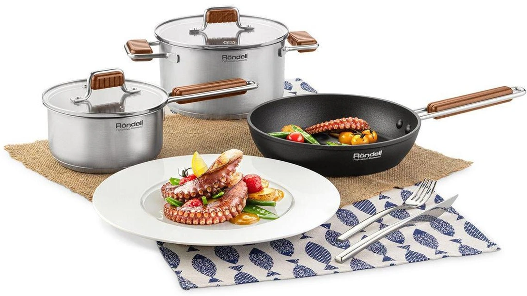В коллекцию Fjord входят сковороды, вок и сотейник из кованого алюминия, а также ковш и две кастрюли из нержавеющей стали.