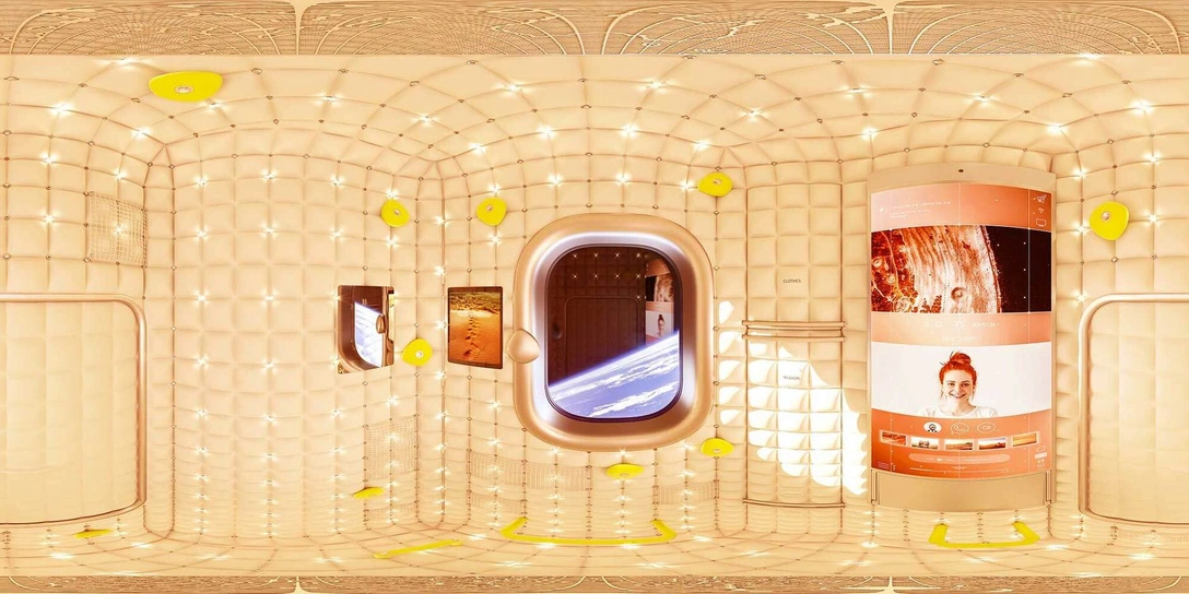 Для создания такого эффекта мягкие стенки каюты усыпаны меняющими цвет нано-светодиодами. Освещение в каюте может меняться, в зависимости от настроения и биоритмов космонавта.
