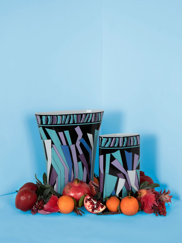Emilio Pucci представляет лимитированную коллекцию ваз и блюд, разработанную и выпущенную совместно с немецкой фарфоровой мануфактурой Rosenthal. В нее вошло 11 оригинальных изделий, созданных в период с 1961 по 1977 гг, украшенных фирменными принтами модного бренда Zadig и Palm leaves.