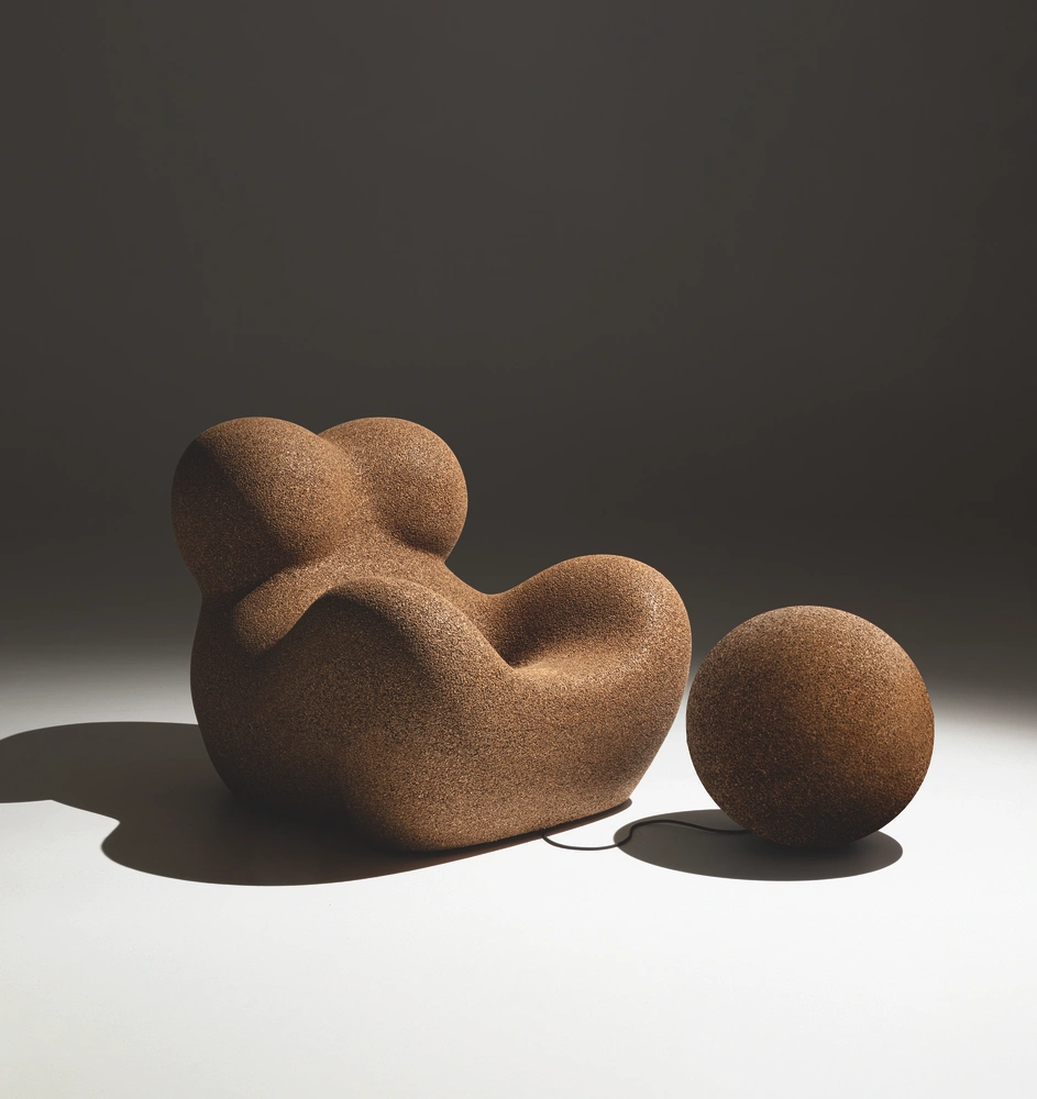 Практически каждый год на Миланской неделе дизайна итальянская компания B&B Italia делает специальную экспозицию, посвященную бестселлеру всех времен — креслу Up 5_6, созданному в 1969 году Гаэтано Пеше (Gaetano Pesce). Не стал исключением и этот необычный год. В рамках вневыставочной программы Fuorisalone 2021 компания представила в своем новом пространстве D Studio Milano специальный выпуск культового объекта дизайна из переработанной пробки. Для производства этого кресла использовались пробки от бутылок, которые собирались школьниками по всей Италии. После этого их измельчали до состояния гранул и добавляли в полученный состав связующие вещества натурального происхождения.