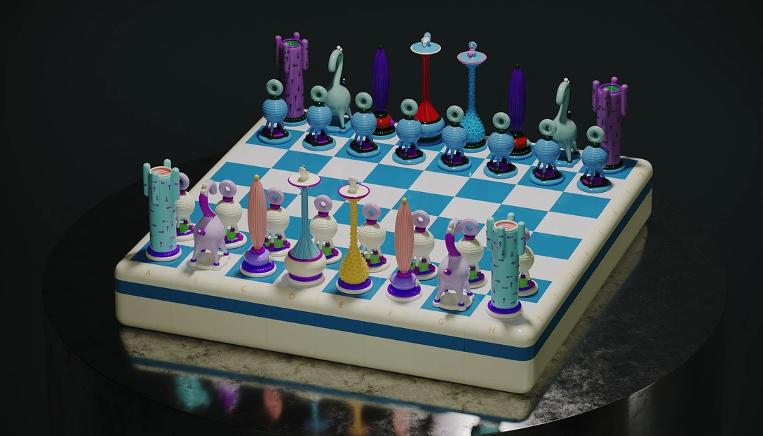 Российский дизайнер Тарас Желтышев представил вторую лимитированную серию шахмат. Получившая название «Другое королевство: светлый этап» она рассказывает о перемирии двух королевств арт-вселенной Yoomoota. Художник запечатлел момент, когда персонажи обмениваются знаниями и благами, а атмосфера вокруг напоминает веселую ярмарку.