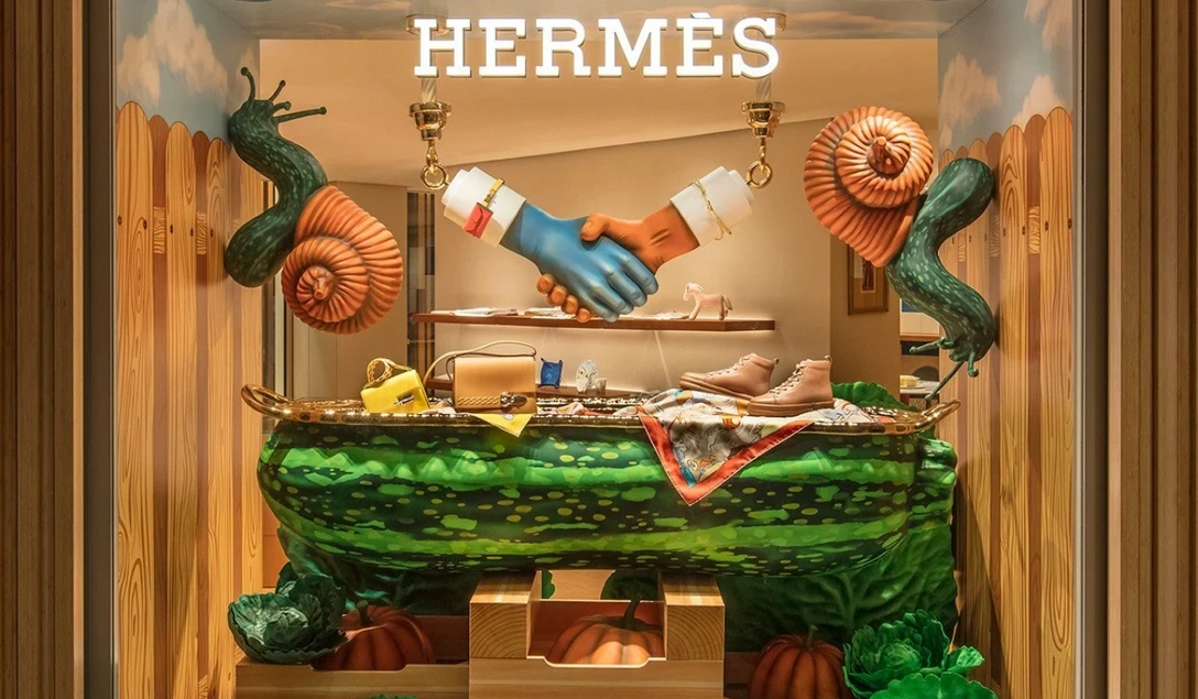 Пышный огород с гигантскими овощами и животными в роли фермеров украсил осеннюю витрину Hermès в Гонконге. Создал сказочный оазис с говорящим названием Нortus Maximus (лат. самый большой сад) дизайнер Йоб Смитс (Job Smeets), со-основатель дизайн-студии Studio Job, — большой затейник и любитель эпатажа. Он соединил в своих фантасмагоричных инсталляциях мотив фермерских конкурсов («Чья тыква или кабачок больше»), элегантный антропоморфизм и стильные объекты Hermès.