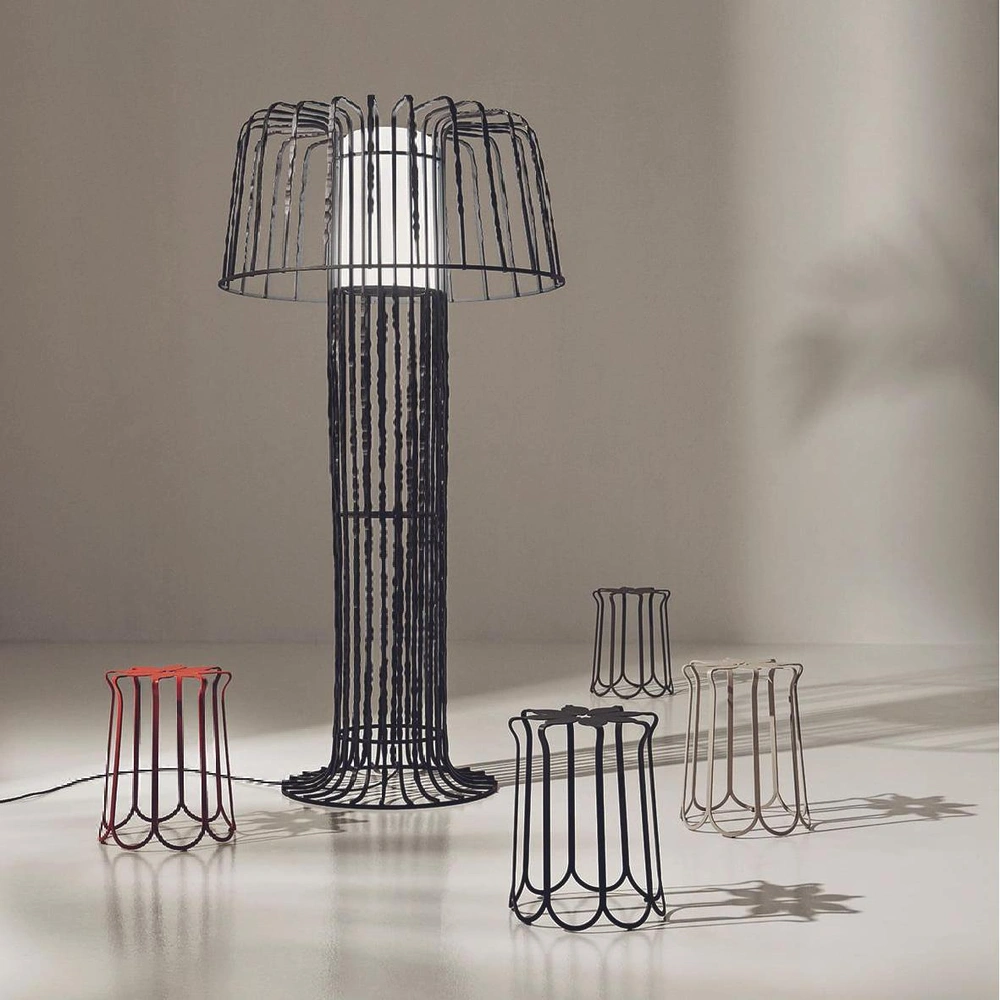 Новые объекты по дизайну Луки Никетто (Luca Nichetto) для Ethimo демонстрируют красоту и изящество итальянской ковки, чья многовековая традиция постоянно переосмысляется через эксперименты и адаптируется под новые дизайн тренды. работая над торшером Lustra и табуретами Folia, дизайнер хотел показать, как из прочного, твердого железа можно создать гибкие, изящные, ажурные формы.