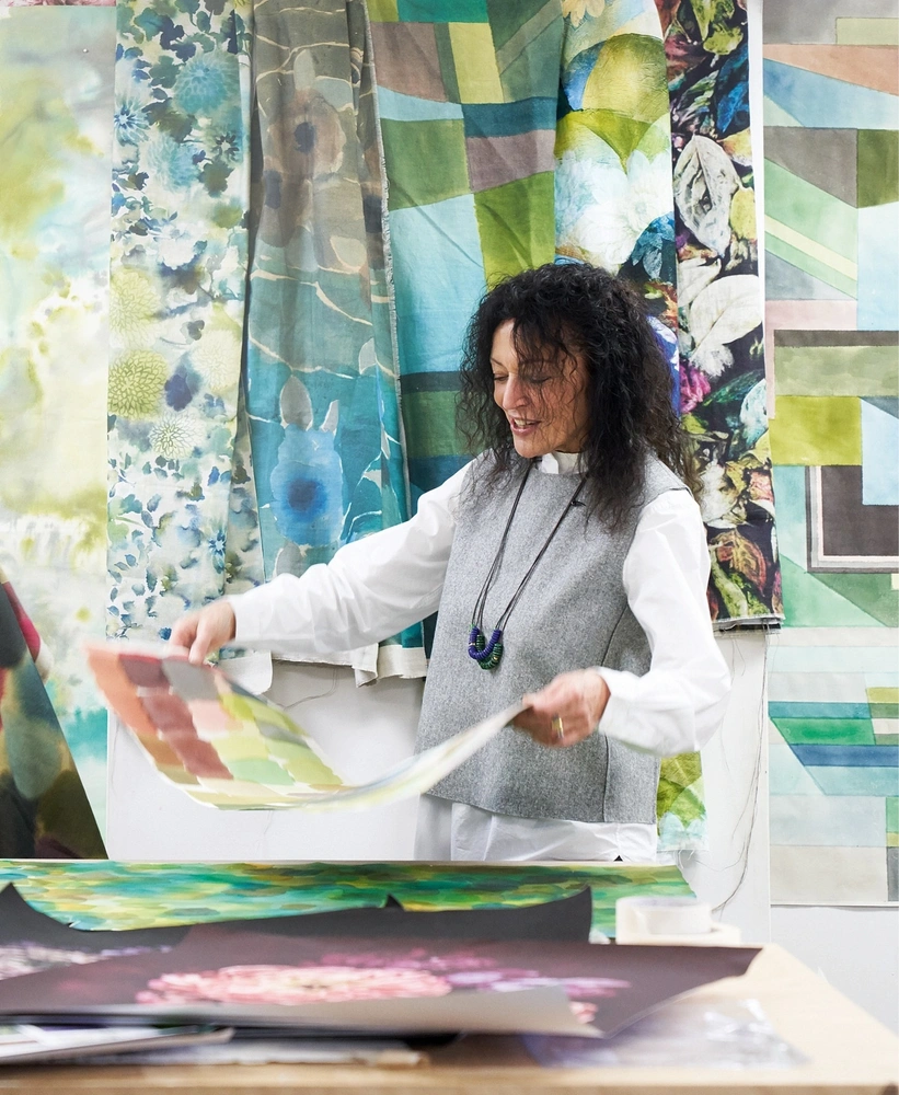 Название юбилейной выставки Designers Guild в Музее моды и текстиля в Лондоне — Out of the Blue — можно перевести как «совершенно неожиданно», и речь, конечно, о том, как появилась марка. Но если говорить буквально, то окажется, что история Триши Гилд (Tricia Guild) действительно началась «с синего цвета». В предисловии к одноименной книге, выпущенной к 50-летию компании, дизайнер рассказывает: «Мои самые первые детские воспоминания полны ярких оттенков. Бабушка и дедушка были увлеченными садоводами, и я им часто помогала. Хорошо помню один солнечный весенний день, когда, глядя сквозь сиреневые цветы глицинии и ярко-зеленые первые листья деревьев на бесконечное голубое небо, я была заворожена красотой мира вокруг».