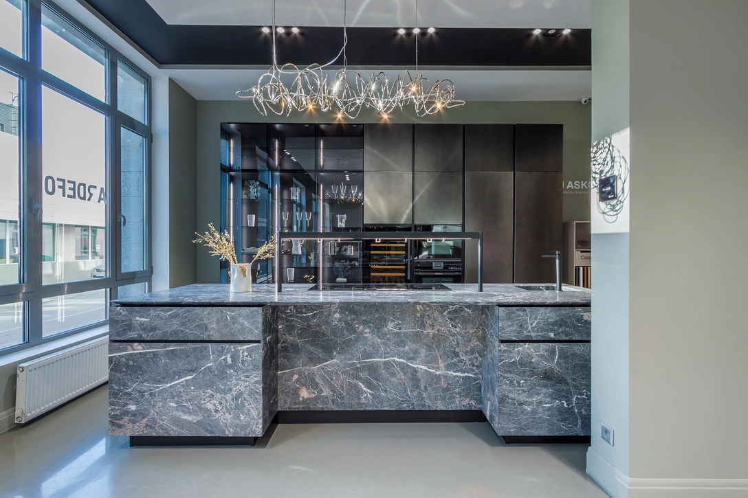 В конце марта в интерьерном салоне Arfedo (Санкт-Петербург) состоялась официальная презентация новой экспозиции итальянского кухонного бренда Cesar и шведского производителя ASKO. На ней представлена кухня N_ELLE — новая версия монолитной модели N_ELLE в роскошкой отделке из серого мрамора Grey Saint Laurent, оборудованная встроенной техникой из коллекции ASKO Craft (индукционной варочной панелью, духовым шкафом на пару, компактной духовкой с функцией СВЧ, холодильником и вакууматором).