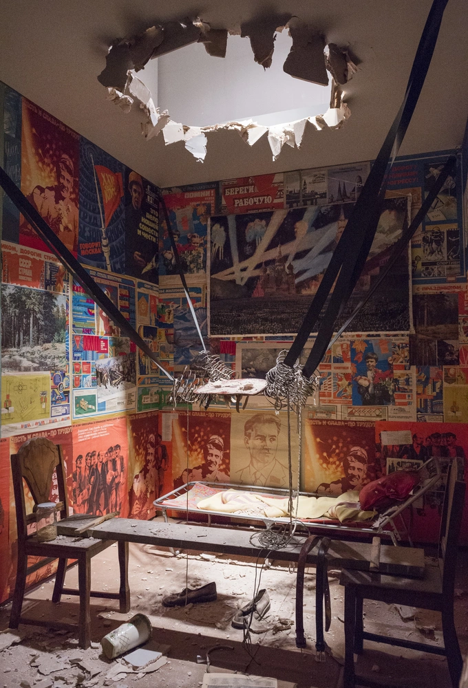Е. А.: Моя самая любимая инсталляция должна была экспонироваться, но не участвует в выставке. И я очень жалею об этом, потому что это вообще одна из моих самых любимых работ Кабакова с композитором Владимиром Тарасовым — «Случай в музее, или Музыка воды». И мы сделали все, чтобы представить в Москве этот проект, все уже было для него готово, но, по каким-то не зависящим от нас причинам, его экспонировать не удалось.