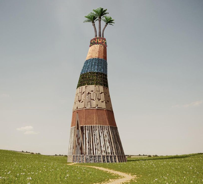 Каждое лето во время «Архстояния» в арт-парке Никола-Ленивец на реке Угре появляются новые объекты: некоторые строятся сильно заранее, а некоторые появляются в процессе самого фестиваля. На этот раз главным событием станет 29-метровая башня известного архитектора Тотана Кузембаева, сложенная слоями из разных материалов вторичной переработки — от костей животных до пластика и битого стекла.
