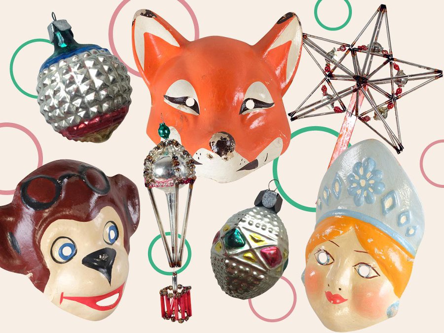 Традиция устраивать новогодние елки появилась в СССР в 1930-х годах. Первая главная елка страны и бал-карнавал отличников состоялись 1 января 1937 года в московском Доме Союзов. В последствие взрослые елки начали проводить повсеместно, и карнавальные маски стали символом праздника не только для детей, но и для взрослых на новогодних вечерах в клубах и дворцах культуры при предприятиях. Еще в начале 1950-х маски приходилось мастерить самостоятельно, но к 1957 году было налажено их массовое производство. Мастера придумывали дизайн масок и лепили образцы вручную. После этого изготавливались гипсовые формы, по которым выполнились копии из папье-маше. Заготовки сушили, обрезали, шпаклевали и грунтовали, а затем раскрашивали. В завершение маски покрывали бесцветным нитролаком, прикрепляли резинки и этикетки.