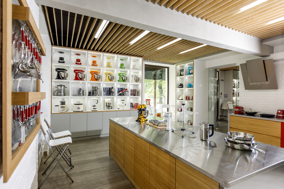 В магазине предусмотрена активная кухонная зона, где покупатели могут протестировать представленную технику. Пространство KitchenAid станет площадкой для проведения мастер-классов и кулинарных тренингов. На открытии гостей встретила творческая кулинарная атмосфера и фуршет от партнеров бренда — кулинарной школы Аркадия Новикова Chefshows by Novikov. Угощения были приготовлены "в прямом эфире" в кухонной зоне магазина при помощи техники KitchenAid. Искрометный мастер-класс для гостей провела бренд-шеф кулинарной школы и амбассадор KitchenAid в России Катерина Агроник — специалист с мировым именем и страстная поклонница техники KitchenAid.