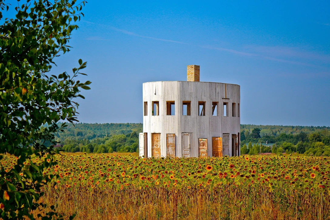 Коллекция домов-манифестов Никола-Ленивца в этом году пополнилась двумя новыми — домом-обелиском от архитектурного бюро Katarsis и домом-воздухопроводом от арт-группы «Алыча».