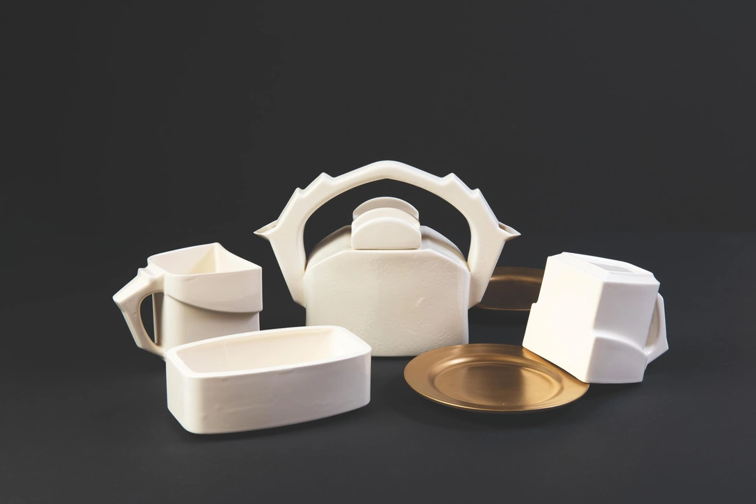 Елена Петько, PELE Design. «Проконструктивистское». Шамот, глазури, нержавеющая сталь. Москва, 2023.