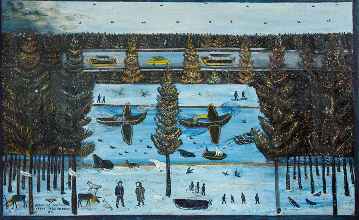 С 14 октября по 14 февраля в Московском музее современного искусства пройдет ретроспективная выставка работ одного из ключевых представителей российского наивного искусства Павла Петровича Леонова. В экспозицию, призванную раскрыть основные темы творчества художника, вошло более 120 произведений: от первых опытов 1960-х годов до полотен последних лет жизни. Выставка разделена на семь частей, в соответствии с хронологией жизни мастера. В рамках проекта покажут документальный фильм о Павле Леонове, созданный специально к столетнему юбилею художника режиссером Мурадом Ибрагимбековым и сценаристом Павлом Финном. Лента также рассказывает о процессе подготовки выставки «Зазеркалье Павла Леонова».